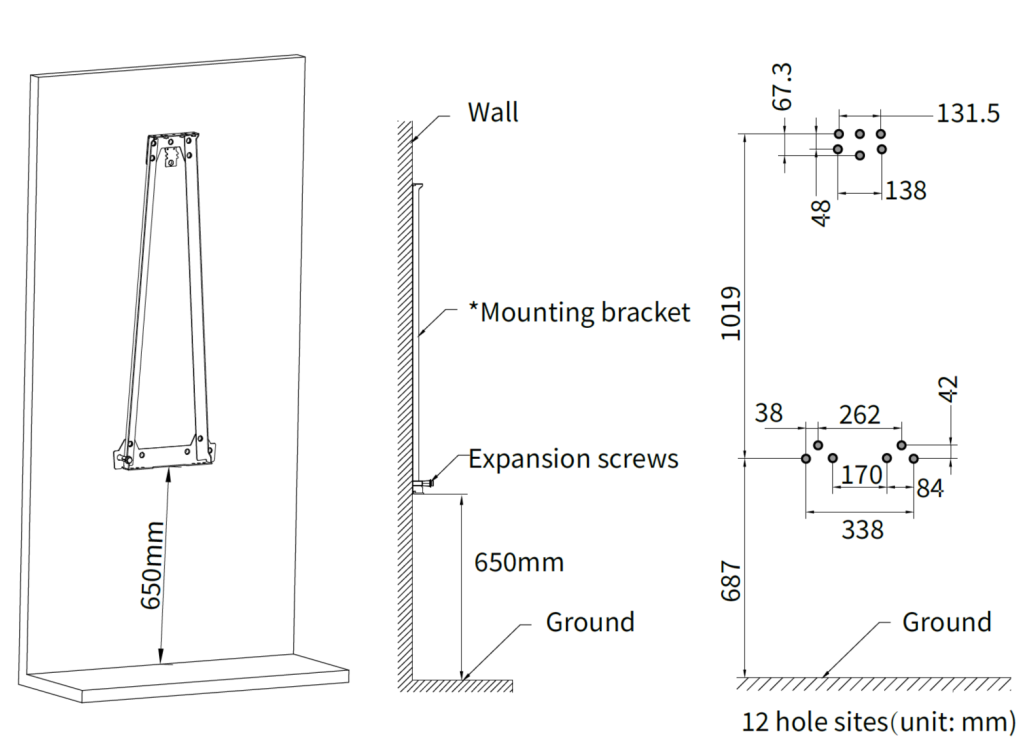 מרחב סביבתי: המרחב האידיאלי הנדרש הוא מרחק של יותר מ-1.5 מטרים לאורך הקיר (0.75 מטרים מכל צד של מרכז המכונה) ו-2 מטרים מחוץ לקיר.