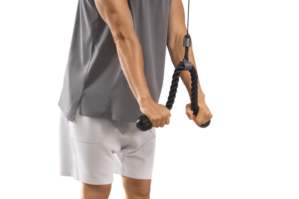 חבל טרייספס (תלת-ראשי) מקצועי: מבודד באופן מושלם את שריר הזרוע האחורית ומאפשר גם תרגילי בטן בכריעה.